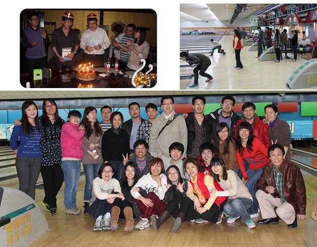 為豐富廣大員工的業(yè)余生活,促進(jìn)交流與友誼,打造自信與陽光的職場文化,我公司于2012年3月23日舉辦新一期員工活動日?;顒佑晒揪慕M織和安排,并充分發(fā)揮員工的自主能動性。項目包括運(yùn)動類的保齡球比賽,晚上會餐,以及每月都有的員工生日慶祝活動。