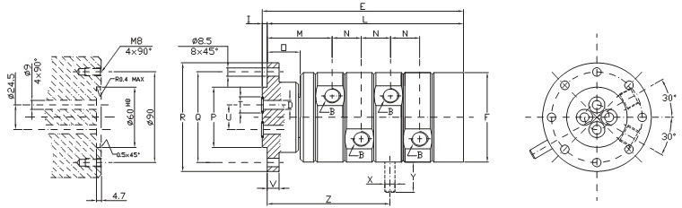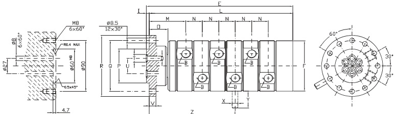 1、此類型的旋轉(zhuǎn)接頭被應(yīng)用到低轉(zhuǎn)速、高壓力的場(chǎng)合。(此型號(hào)的旋轉(zhuǎn)接頭還可以通入其他的液體)